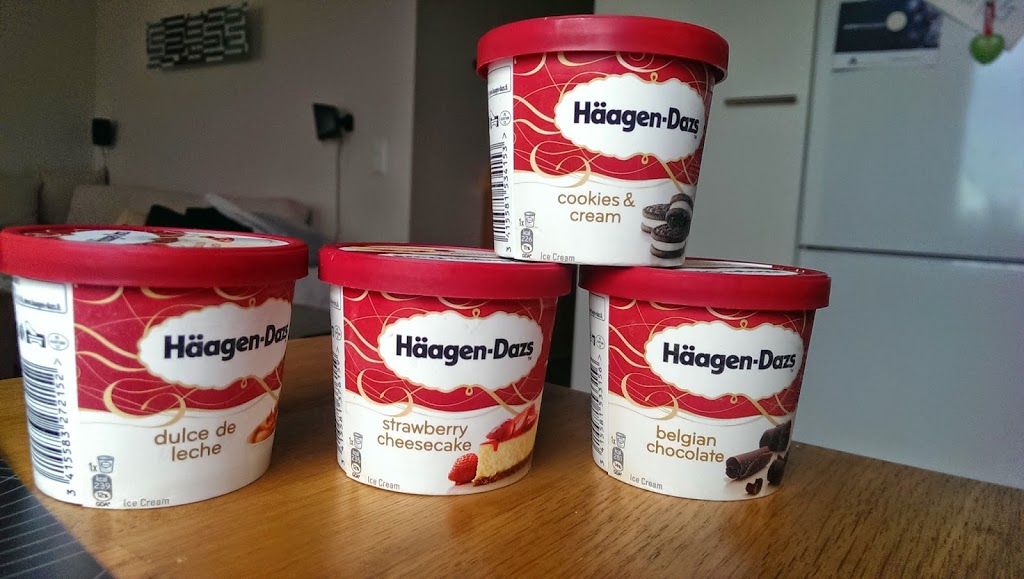 Köpte ett ”kit” med fyra mini Häägen-Dazs och de var underbara, men ska äta lite Chicken drumsticks och ris och sås så snart maten är färdig. Per gjorde lammlever i helgen, jag åt, men var väl lagom imponerad….