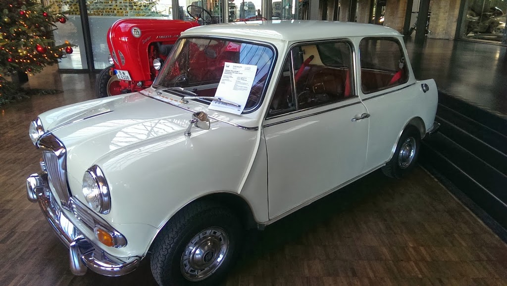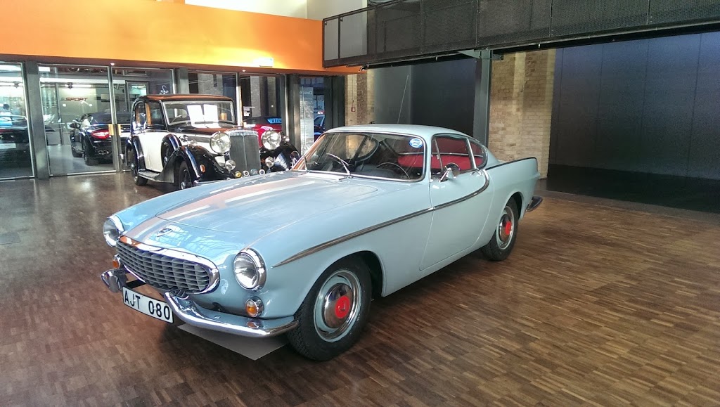 | Var på en bilsalong med gamla bilar |