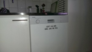 Fick hem en dekal idag som jag satte på diskmaskinen…..