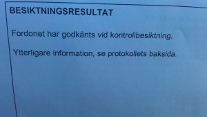 Bilen gick igenom besiktningen utan anmärkning, det var skönt.