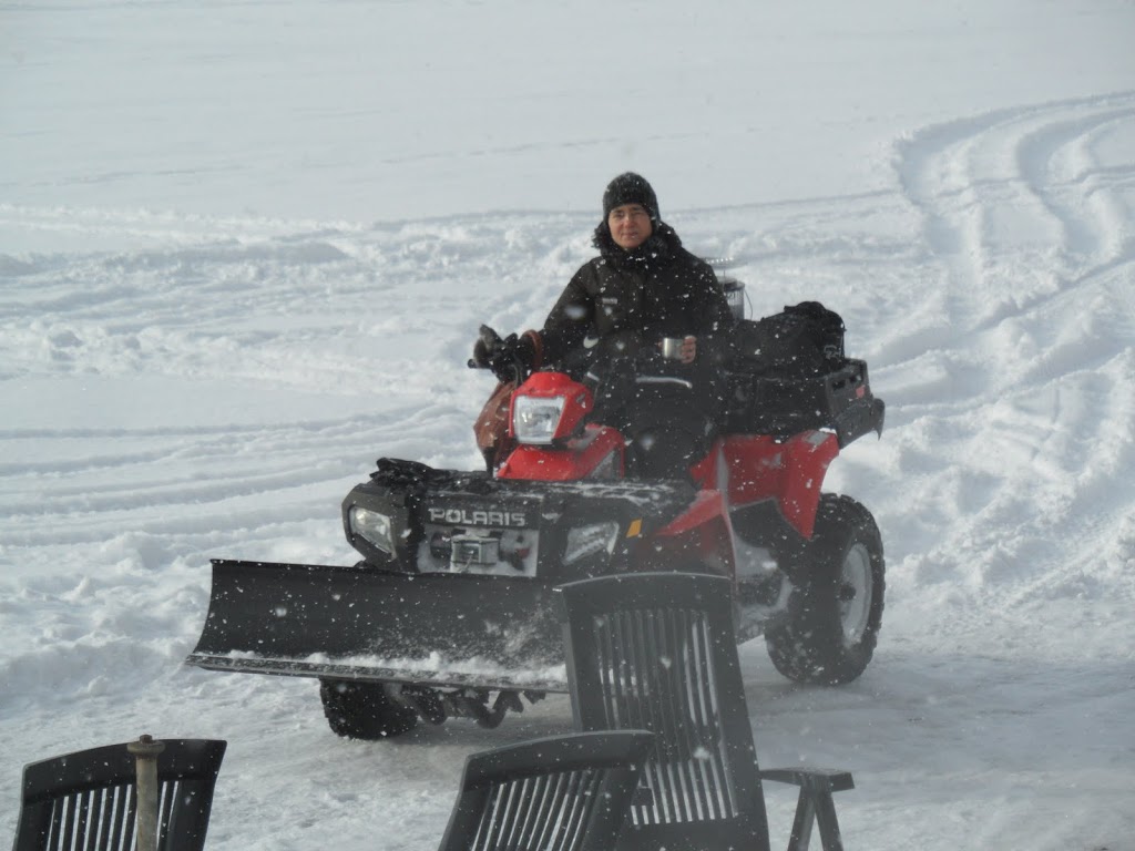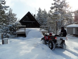 Huset stod kvar och inget tak hade rasat. Men var en ganska kall dag med korvgrillning och fyrhjulingsåkande. Åkte inte skoter över, utan alltså fyrhjuling. Snöade hela dagen oxå.