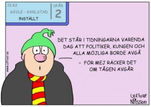 Blir nog hemma imorgon oxå med andra ord… fast det ska ju bli snökaos så SL lär ju få problem iaf så det är väl en bra vald dag. Pers mamma kommer i morgon kväll oxå och hon skulle ta tåget upp eftersom det ska bli snö, men SJ är ju ungefär lika pålitliga som SL i snön. Så vi får väl se…