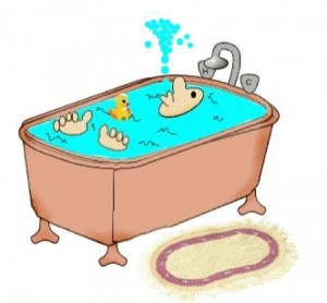 Är hemma och snorar och badar idag. Växlar mellan sängen och badkaret med skållhett vatten för att hålla värmen. Håller på att frysa ihjäl när febern går upp och då är det badet som gäller, sedan när febern går ned så blir det snarare ett badkar i sängen… livet leker just nu känns det som.. not 🙁