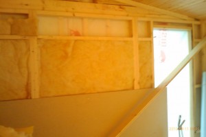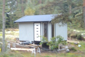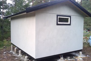 Väggisoleringen är uppsatt och väggarna fastsatta. Isolerade i bara t-shirt och det kliar och sticks på hela armarna eftersom det är glasfiber i isoleringen, smart gjort… Blev klara vid 23-tiden igår kväll. Målade sedan ett av fönstrena och dörren en gång till och fönsterfodrena som ska vara runt dörrar och fönster. Höll på till kl 01 innan vi var klara. Hoppas hinna få in dörren och ett av tre fönster idag innan vi åker. Sedan är det bara två fönster kvar som måste målas och sättas in, och väggarna ska spacklas och slipas och sättas upp väv på som ska målas, blir nog vit antagligen. Taket på insidan ska laseras och innergolv ska läggas, sedan är det klart!!! Får se om vi hinner allt i år, annars får det bli i vår.