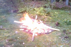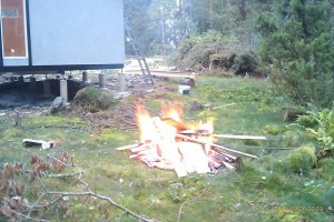 Passade på att elda upp lite brädbitar som blivit över vid kapningen av alla brädor