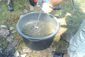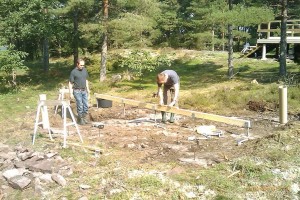 Nu är hela bottenplattans plintar färdiggjutna, allt har gått smärtfritt förutom alla flugor och blinningar som hela tiden surrar runt omkring en och även tar sig ett bett emellanåt…