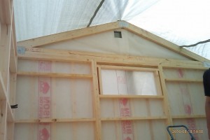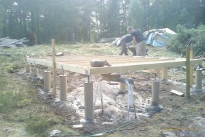 Lade färdigt isoleringen till golvet oxå igår kväll/natt. Orkade inte lägga hela golvet, så vi lade bara två golvplankor. Så idag blir det att börja med det och sedan försöka få upp takgavlarna, hur nu det ska gå till för de väger bly och är otympliga och ska lyftas typ två meter upp….