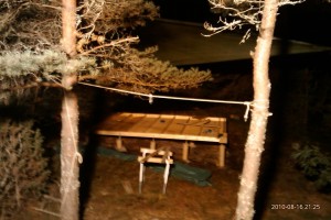 Gick faktiskt bra att bygga med lampan. Man kan iaf göra småjobb och inte behöva avsluta tvärt bara för att det är mörkt. Hoppas hinna få upp väggarna idag mellan skurarna. Vårat sk ”tak” håller väl inte för de största regnskurarna, men om det bara duggar lite så… I natt har det regnat och åskat som satan…. gick t.o.m ned från loftet och satte oss där nere ett tag när det var som värst. Lite trött nu efter att ha fått min ”skönhetssömn” förstörd. Men måste sätta fart, regnar inte nu iaf.