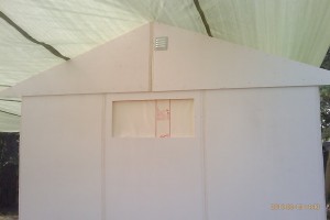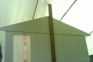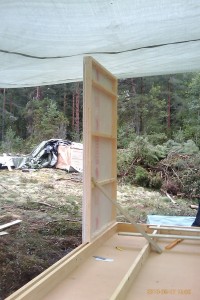 Har fått upp 5 väggsektioner idag på förmiddagen innan ösregnet och åskan kom igen. Strömmen gick oxå och var borta i ca 2 timmar. Nu har det slutat regna och dags att sätta fart igen.