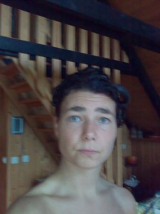 Hej igen. Håller på att färga håret. Sammetsbrun hette den, just nu ser det ganska rött ut men vi får väl se när det är ursköljt. Har suttit i bara mässingen på baksidan framför en spegel vi tog ut och kletat i färgen för att inte få något på trägolvet härinne, och naken för att jag inte hittade någon t-shirt att offra. Så här läcker är jag nu… eller inte kanske.