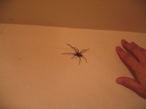 Ihhhhh!!!! Den här stora spindeln satt på väggen när jag skulle gå och lägga mig igår. Jag klev in i rummet och skrek, Per trodde att jag höll på att dö eller nå’t.(Det gjorde jag nästan iof). Spindlar är det värsta jag vet. Jag sa att det var en spindel och han suckade bara, fast när han fick se den var han inte så katig själv. Han trodde att det var en liten stackare, för jag skriker lika mycket oavsett hur stor den är. Jag får rysningar i hela kroppen bara jag ser bilden…