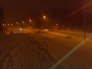 Har snöat här i veckan, men nu har det mesta smält bort. Så här kul var det på väg hem från jobbet i måndags…