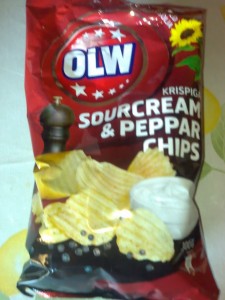 Mmmmm, det var några nya chips med sourcream och pepper. Ska äta det till kvaltävlingen i melodifestivalen ikväll i brist på annat att titta på. Hittade en rolig affär också, Lager 157 heter den och är en outletbutik i gamla Electrolux lokaler. De hade massor fint bl.a jättefina Bondelid-tröjor 2st för 199kr, de kostar i en vanlig affär ca 400 kr st. Aptröjor från Paul Frank för 249kr, massor fina jeans för halva priset typ Fornarina, Cheap Monday, Diesel. Dit måste jag igen så fort jag fått pengar. Nu ska jag äta jordärtskocksoppa som blev över sist.