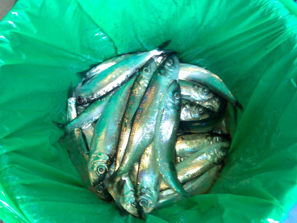 Fiskade lite mer strömming igår, så nu har vi hela frysen full. Vet inte riktigt vad vi ska ha allt till, men inlagd strömming i ättika är ganska gott. Johan och hans son var med och fiskade oxå