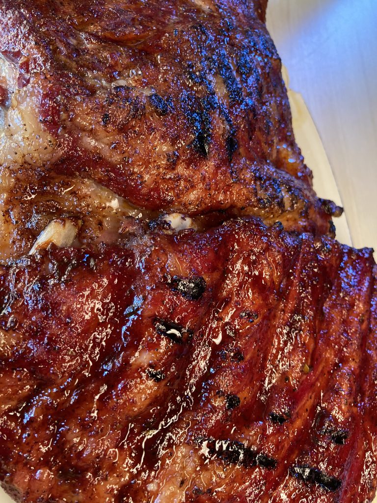 Hittade en BBQ-butik precis i närheten av oss som sålde massa olika grillkol, rub och såser som var riktigt kul. Hade en del kött att grilla oxå så vi köpte revbenspjäll av ”iberico gris”. De är från den som pata-negra skinkan kommer och skinkan är från frigående grisar som strövar i ekskogar längs gränsen mellan Spanien och Portugal, och äter bara ekollon. Det blev underbart gott 🙂