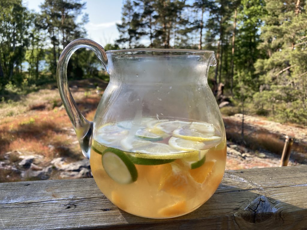 Gjorde vit sangria som passade perfekt i solen och värmen på em/kvällen.