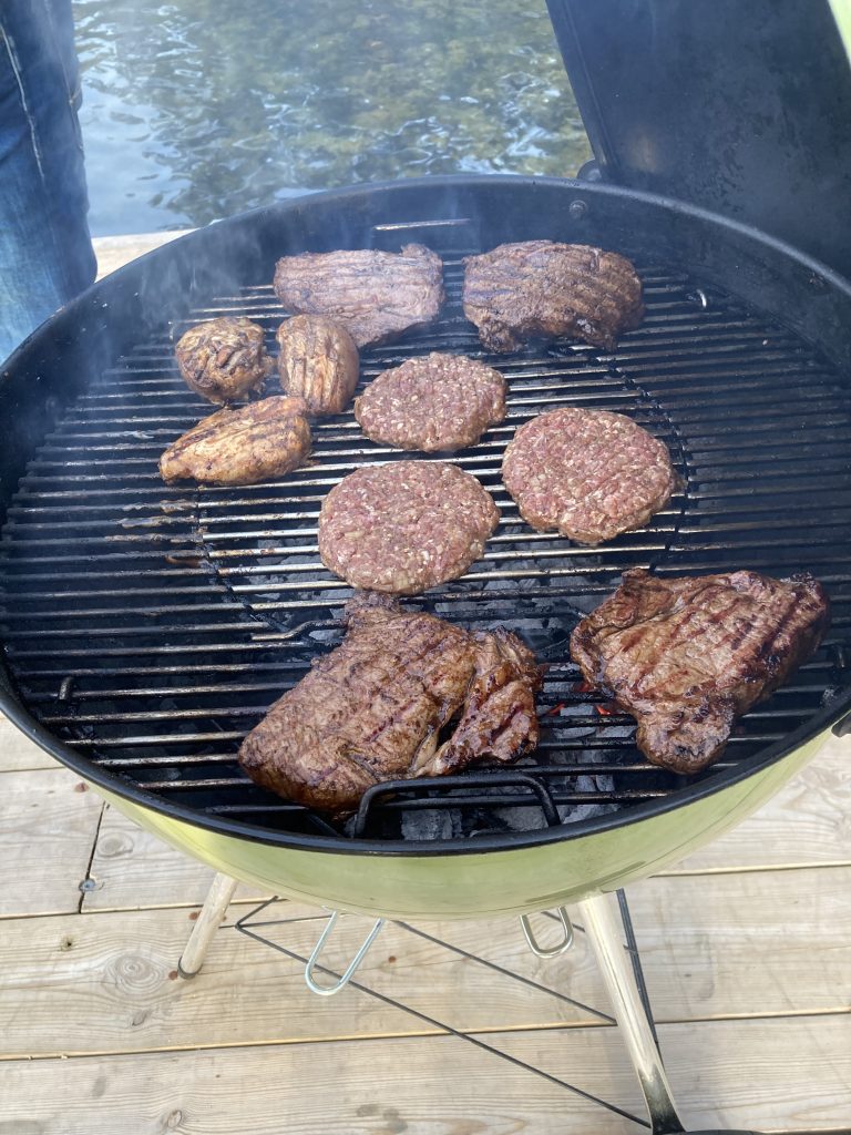 Förra helgen blev det mycket grill i det fina vädret. Först på dagen på Lördagen grillade Per två st majskycklingar som ficka vara på grillen i drygt fyra timmar… Gjorde egen coleslaw till och åt till lunch.