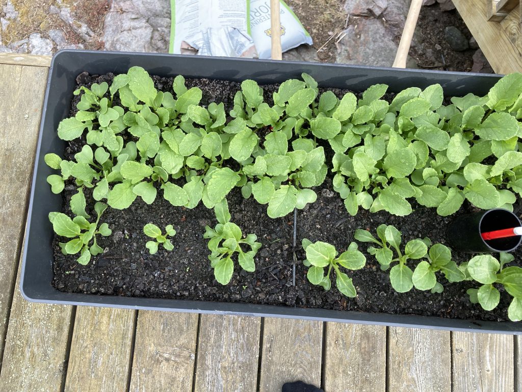 God morgon 🙂 Är i Västervik, kom ned vid 22-tiden igår kväll och ska äta lite frukost och åka in till stan en sväng. Ska handla lite mer jord och plantera lite sallad och rädisor. Blir romansallad och pak choi i år.