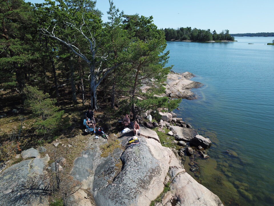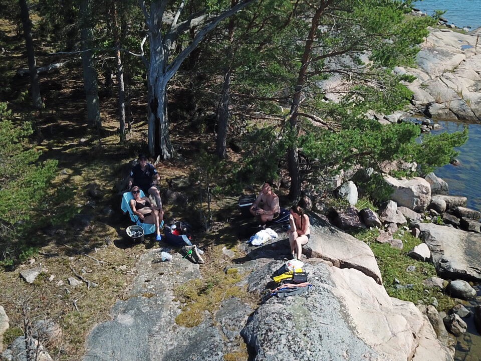 I går var en jättevarm dag, och verkar bli lika varmt idag. Gjorde pastasallad och drog iväg till en annan ö och solade och badade med Proppen och Fredrik. Badade säkert minst 10 ggr. Är typ 21-22 grader i vattnet. Till och med Proppen och Fredrik doppade sig. Per hade med sig drönaren såklart… En konstig grej som hände var att när vi skulle åka därifrån var mina kläder borta… (tights, blus och strumpor). Var inga andra på den lilla ön som vi var på så det var jätteskumt… 🙁 Tur att vi hade båten och att det var varmt. Fick åka hem i bikini…