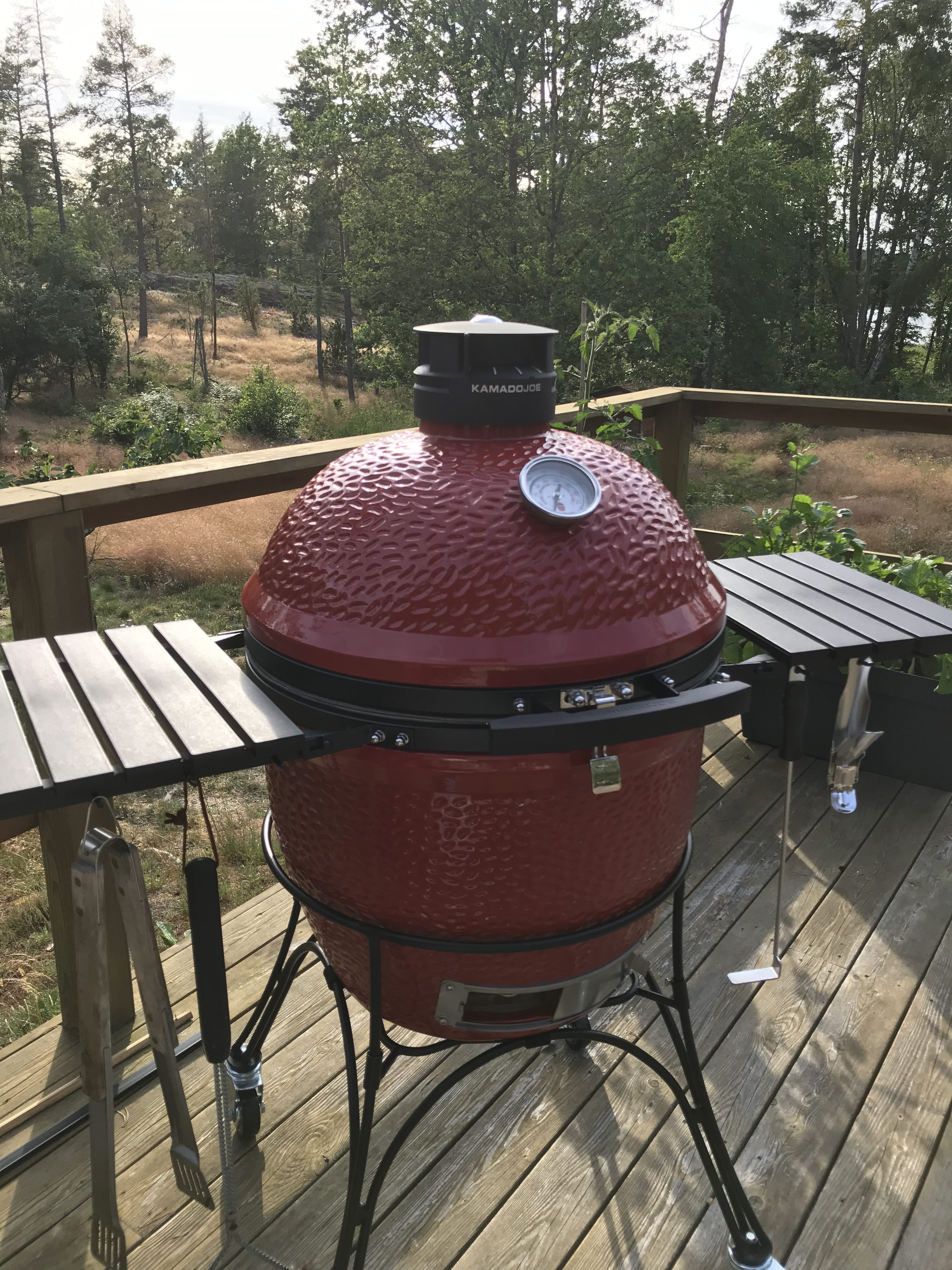 Har beställt en grill som levererades till Kuggviken igår. Sedan skulle vi bara få med den ned i båten och upp till stugan…. Kollit vägde 115 kg…. Plockade isär allt som gick, men forfarande vägde den största delen över 80 kg. Hade lite problem att få ned den i båten och sedan upp ur båten på andra sidan. Sedan skulle den ju upp till stugan oxå… Fick ta den i etapper, typ 5-10m åt gången och sedan vila… Har ont i ryggen idag 🙁