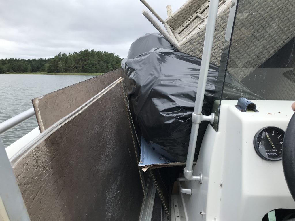 I dag verkar det bli fint väder och varmt. Ska bli 26 grader på eftermiddagen så tänker sitta på bryggan och läsa en bok och bada lite en stund. I morgon ska vi hyra släpvagn och åka in till tippen med gamla duschkabinen och massa kartonger och annat skräp. Är ju ett litet projekt att slänga saker när man har stuga på en ö. Allt måste först bäras ned till båten och lastas, sedan måste allt lastas om till bilen eller släp, så det blir ju lite dubbelt jobb….