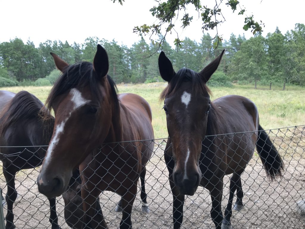 De som äger ön, eller numera har de kvar den stora gården som är här ute, har 4 hästar i hagen precis runt knuten vid oss, så var och matade dem med lite morötter och äpplen härom kvällen 🙂