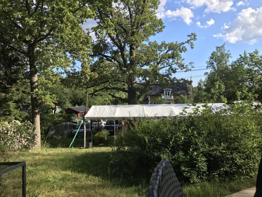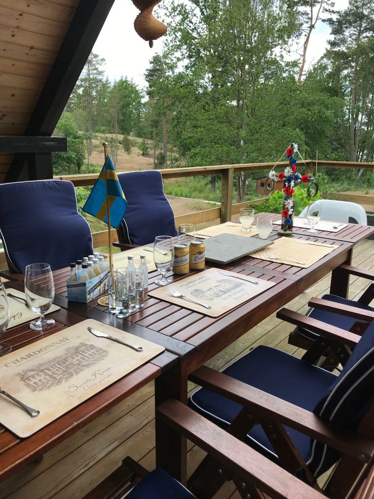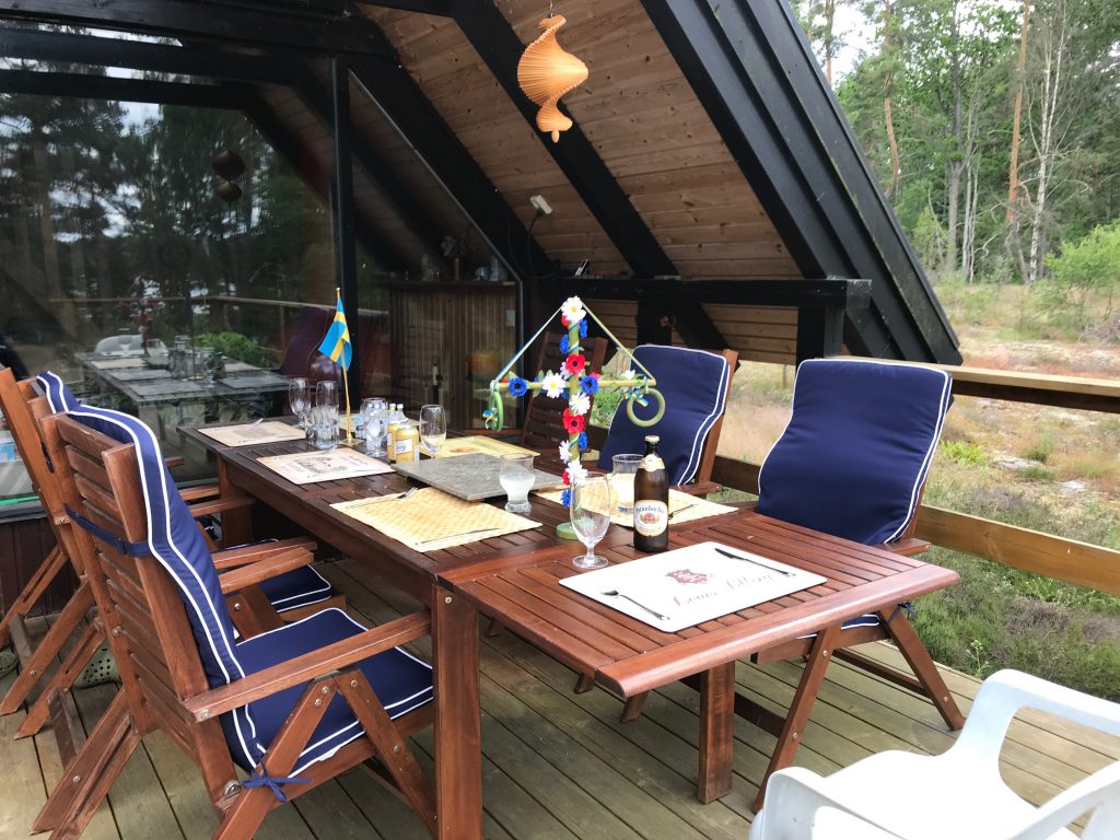 För en gång skull kom inte det traditionella regnet på midsommar. Vi kunde till och med sitta ute och äta. Underbart väder.
