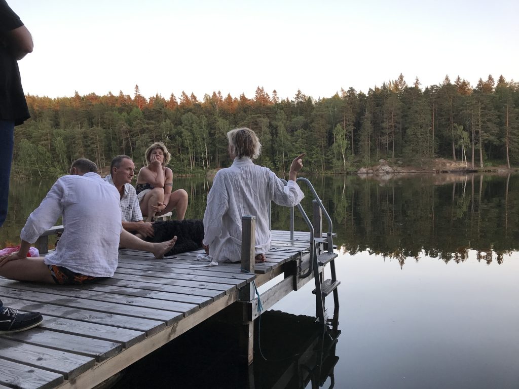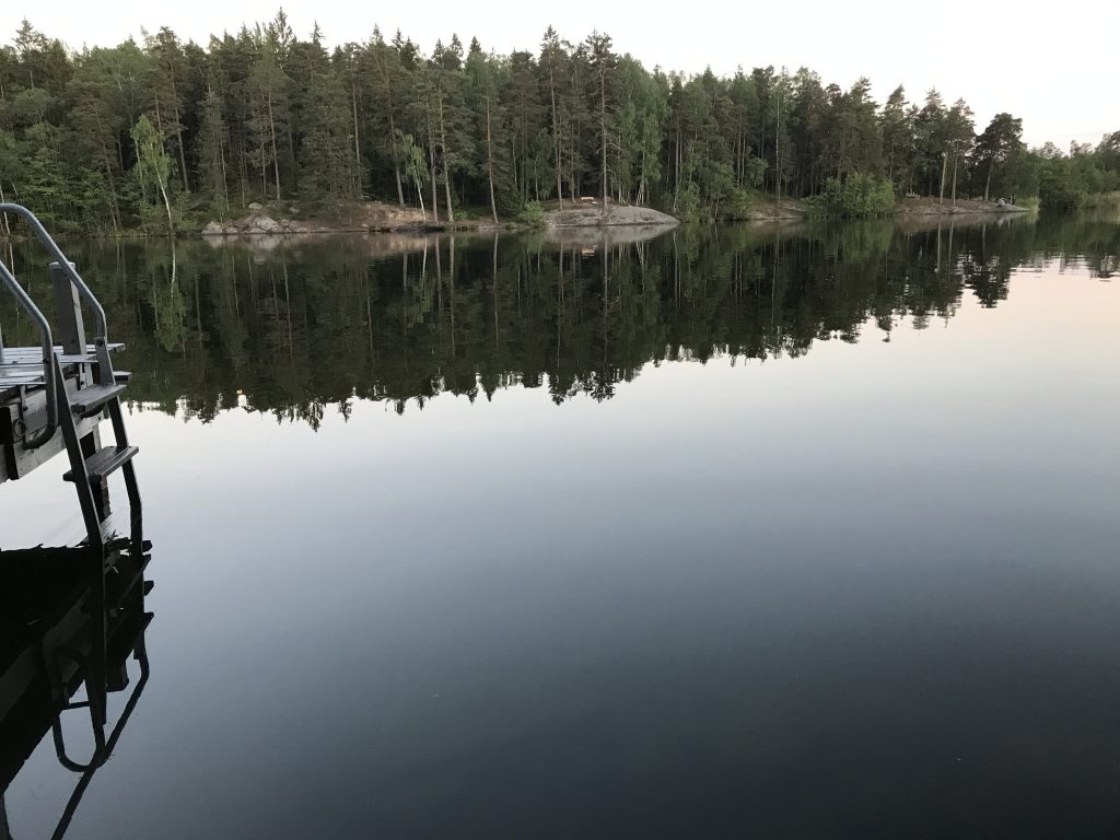 På midsommardagen var det ännu finare väder. Satt ute lite och läste en bok och kopplade av innan vi åt upp lite rester från midsommarafton och alla andra skulle åka hemåt. Badade på kvällen, 20 grader i vattnet 🙂