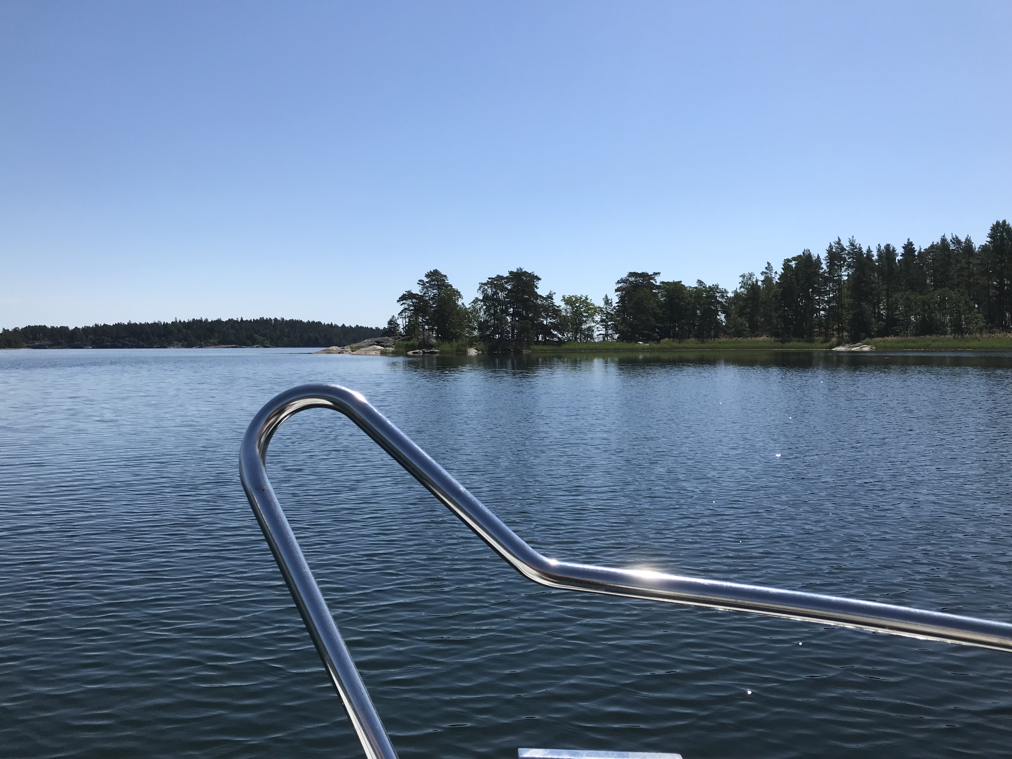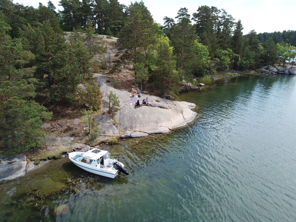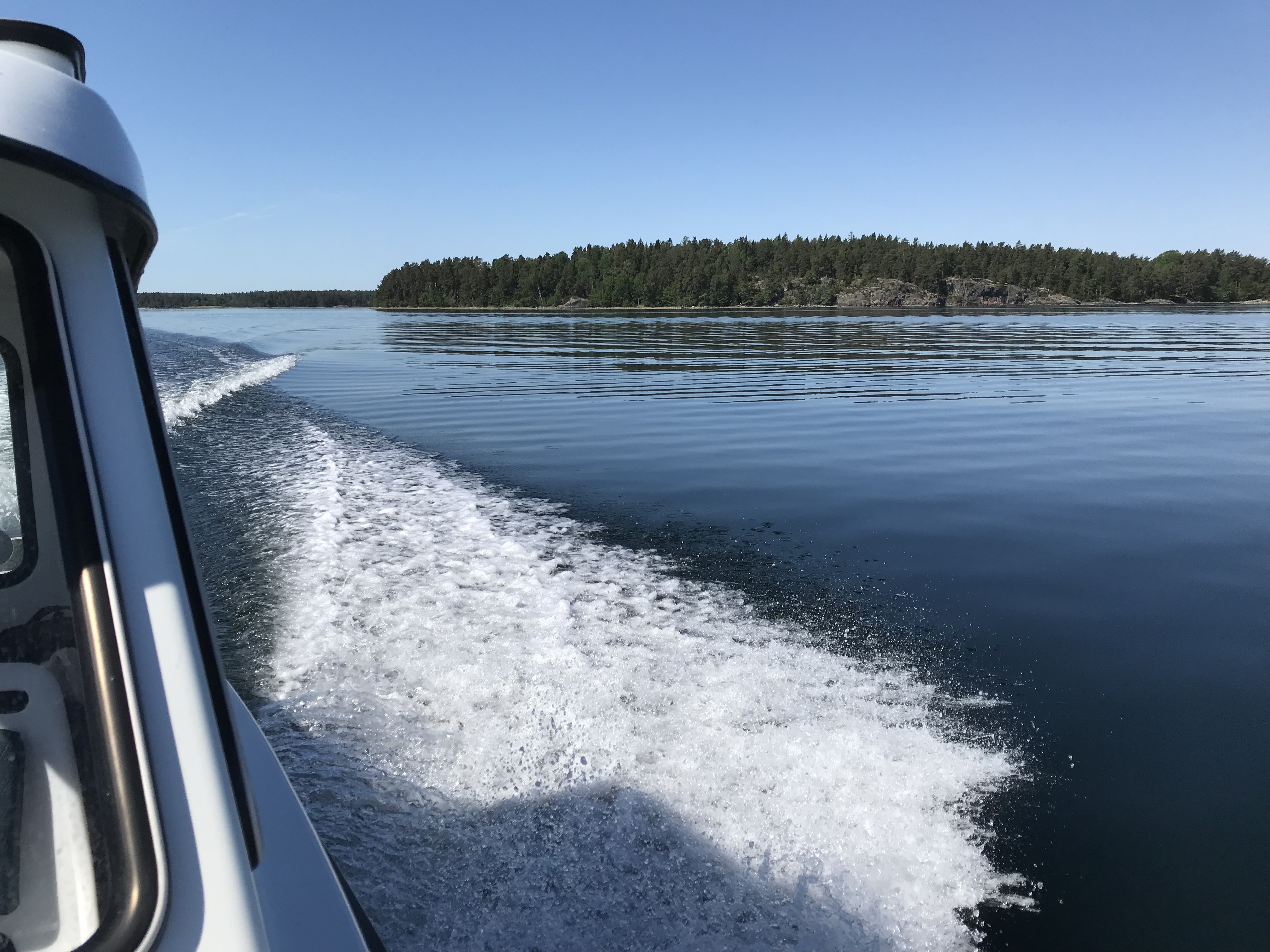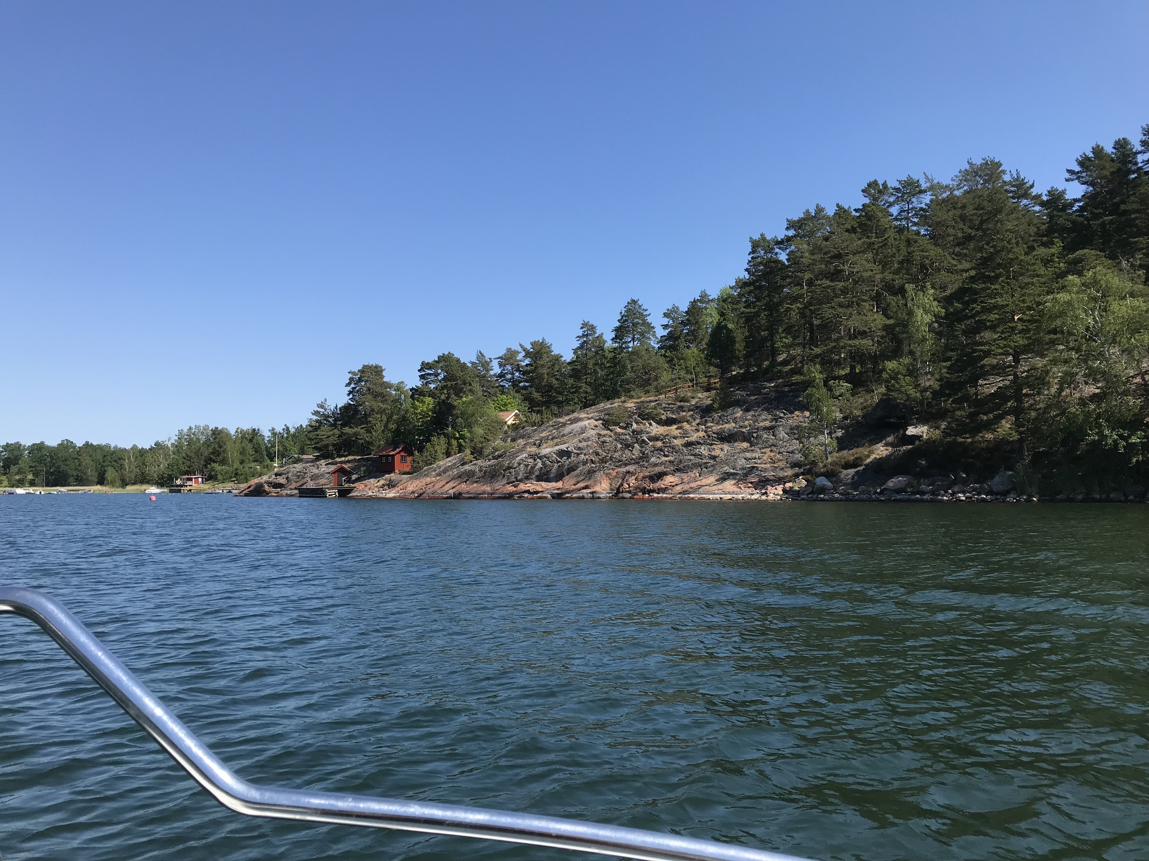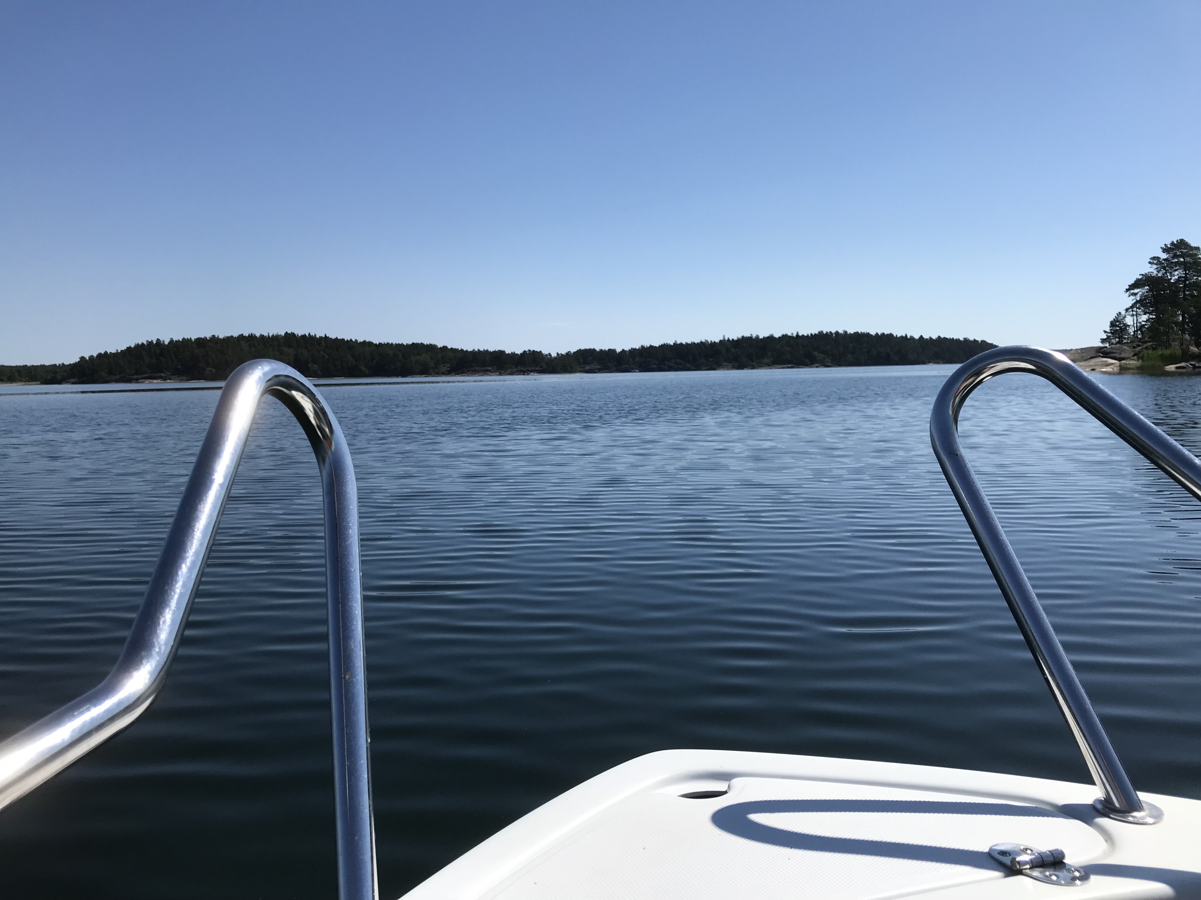 I dag har vi varit på en liten skärgårdstripp med Proppen och Fredrik. Åkte först till Hasselö, men var helt proppfullt så vi åkte vidare och hittade en jättefin klippa, där det dessutom var enkelt att bada. Brukar antingen vara väldigt brant, eller massa alger intill berget, men här var det till och med liten sandstrand. Observera att även Proppen och Fredrik badade…. 🙂