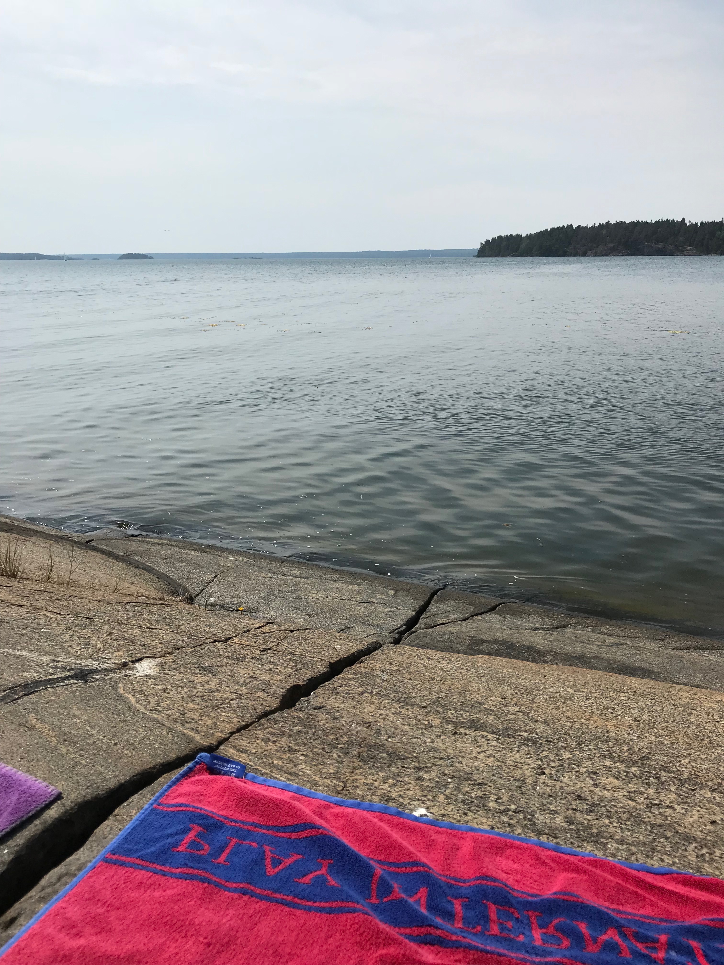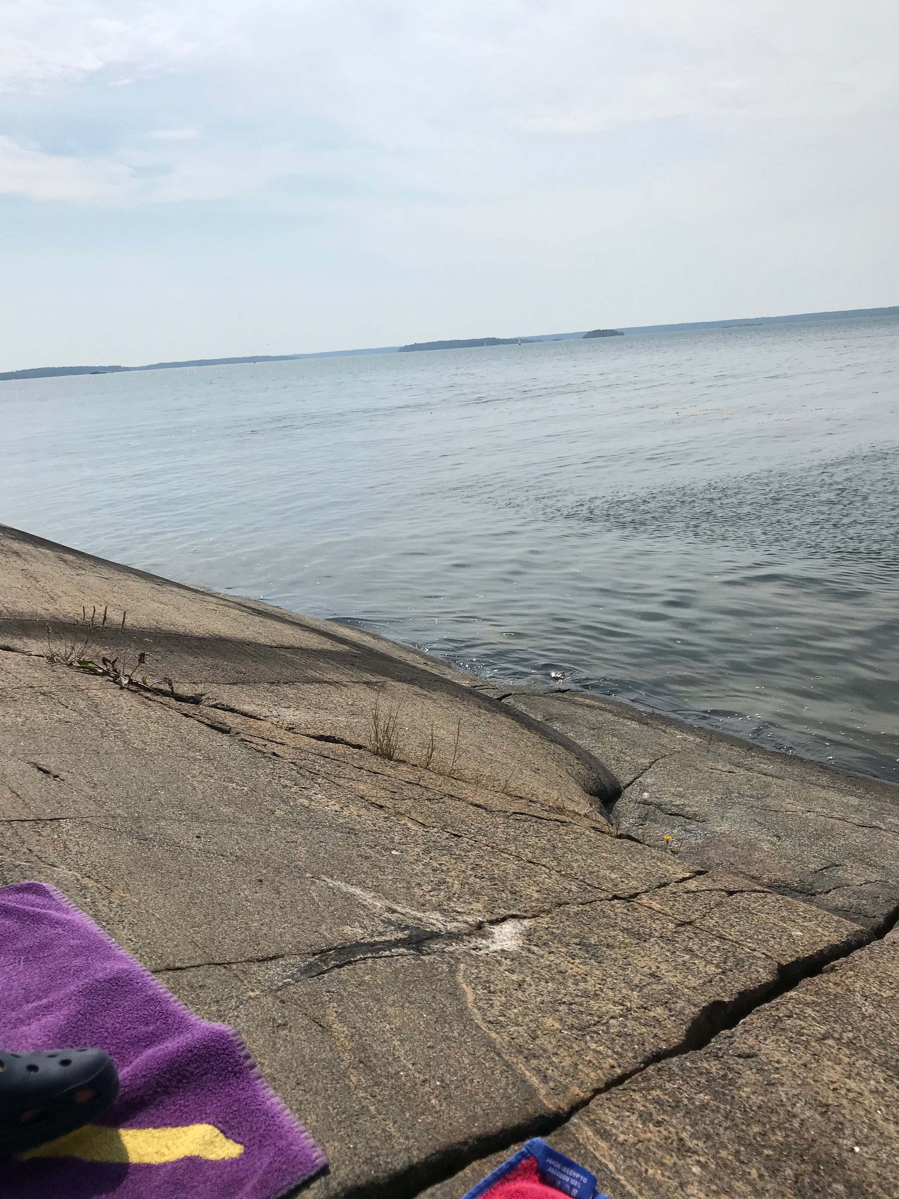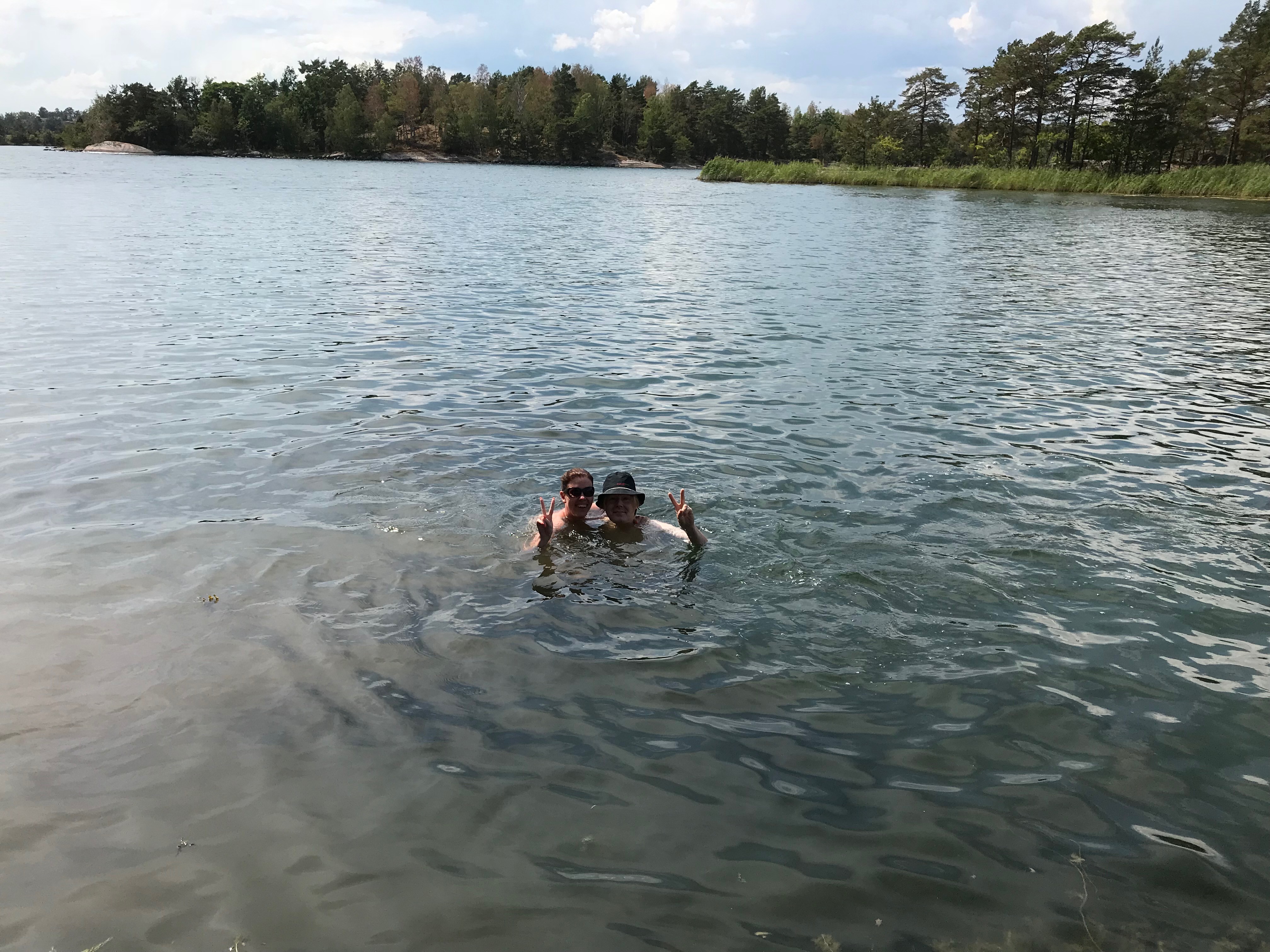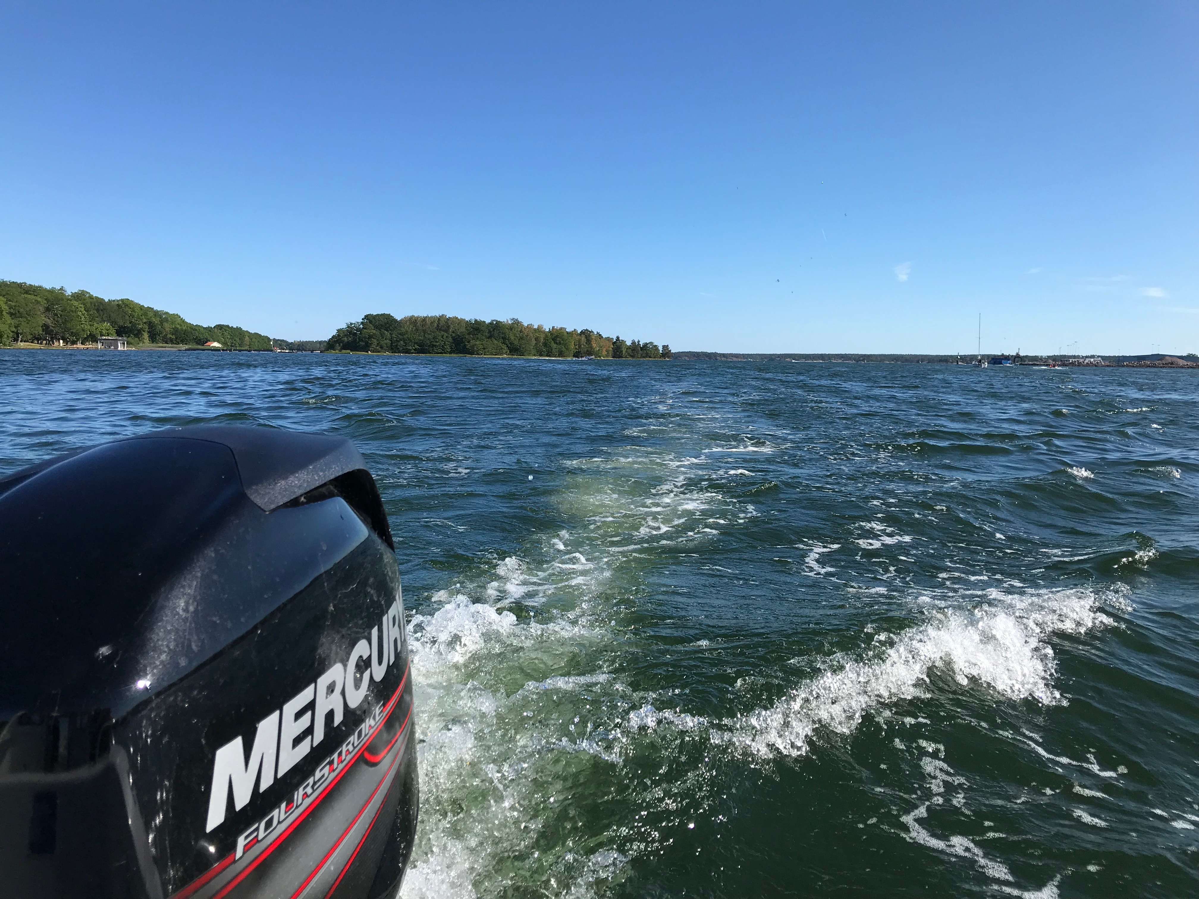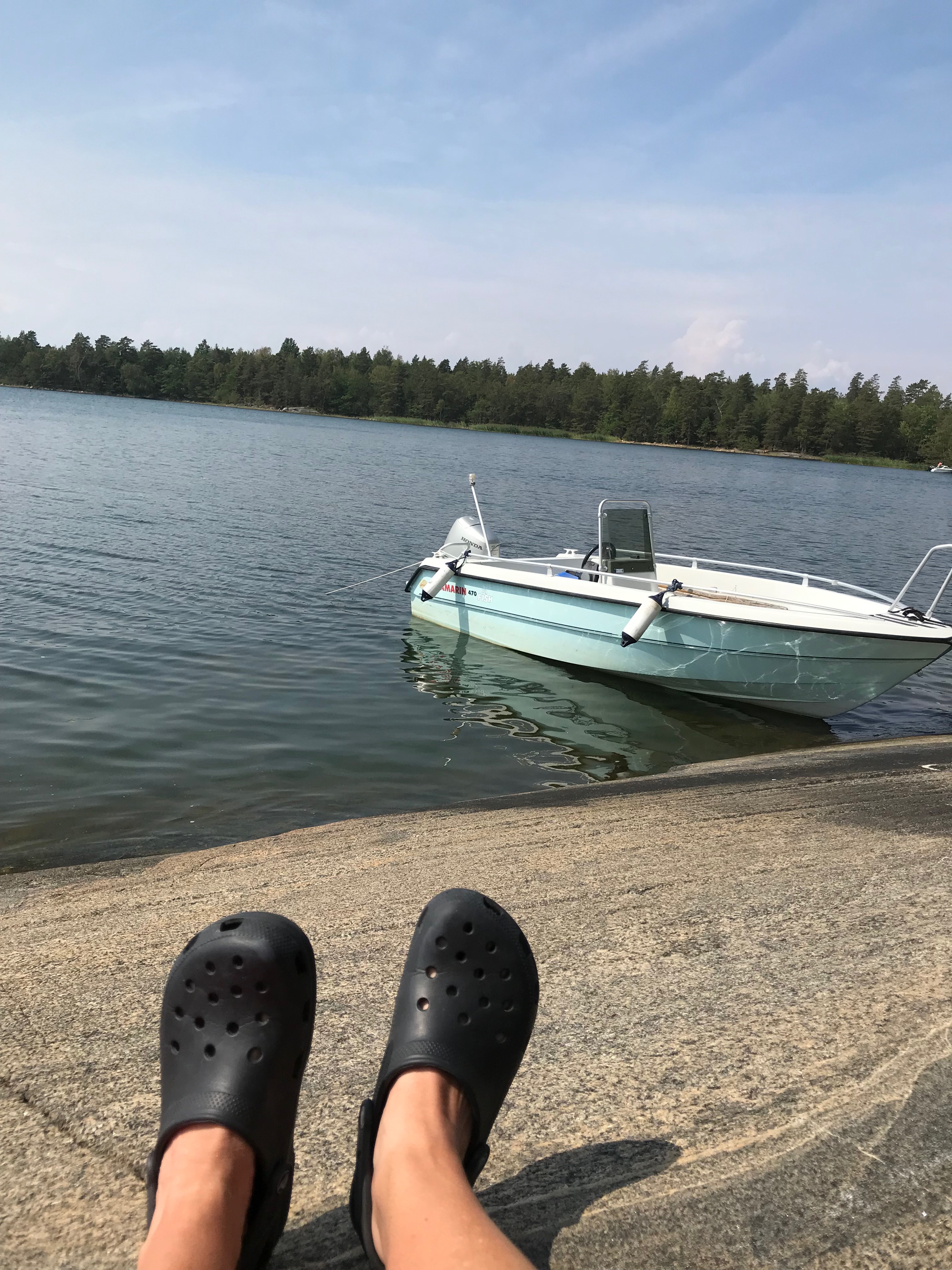 I dag har vi varit på en liten skärgårdstripp med Proppen och Fredrik. Åkte först till Hasselö, men var helt proppfullt så vi åkte vidare och hittade en jättefin klippa, där det dessutom var enkelt att bada. Brukar antingen vara väldigt brant, eller massa alger intill berget, men här var det till och med liten sandstrand. Observera att även Proppen och Fredrik badade…. 🙂