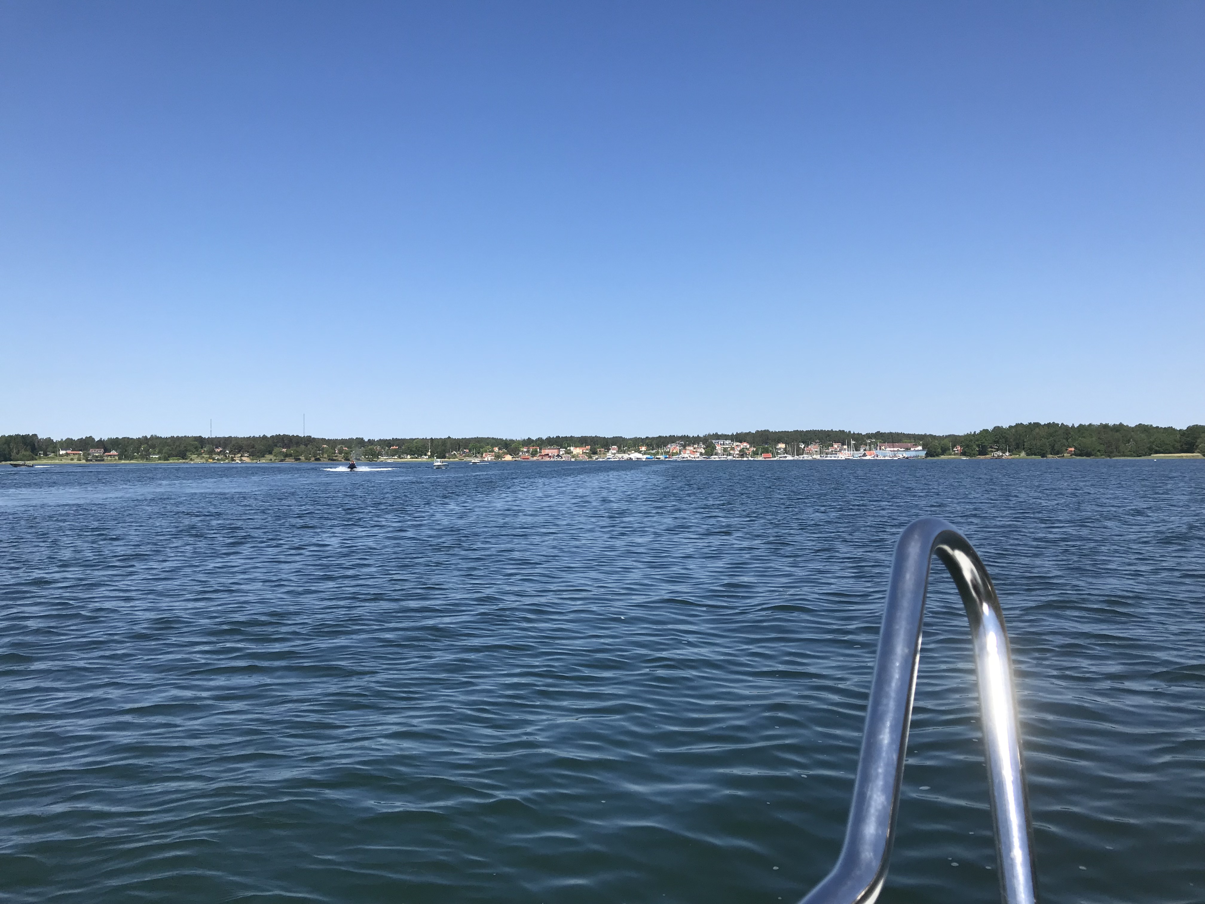 Är en ganska trevlig restaurang med utsikt över hamnen i Loftahammar. Åkte sedan vidare till Thomas och Beatriz sommarstuga utanför Loftahammar. Pers mamma var också där och Thomas har köpt ny båt så vi åkte på en premiärtur till ”Laxboa” på Grindö och köpte glass och rökt lax. Klockan hade börjat bli sen eftermiddag och sedan var det dags för oss att tuffa hemåt igen. Tog årets första bad nere vid bryggan när vi kom hem, 22 grader i vattnet 🙂