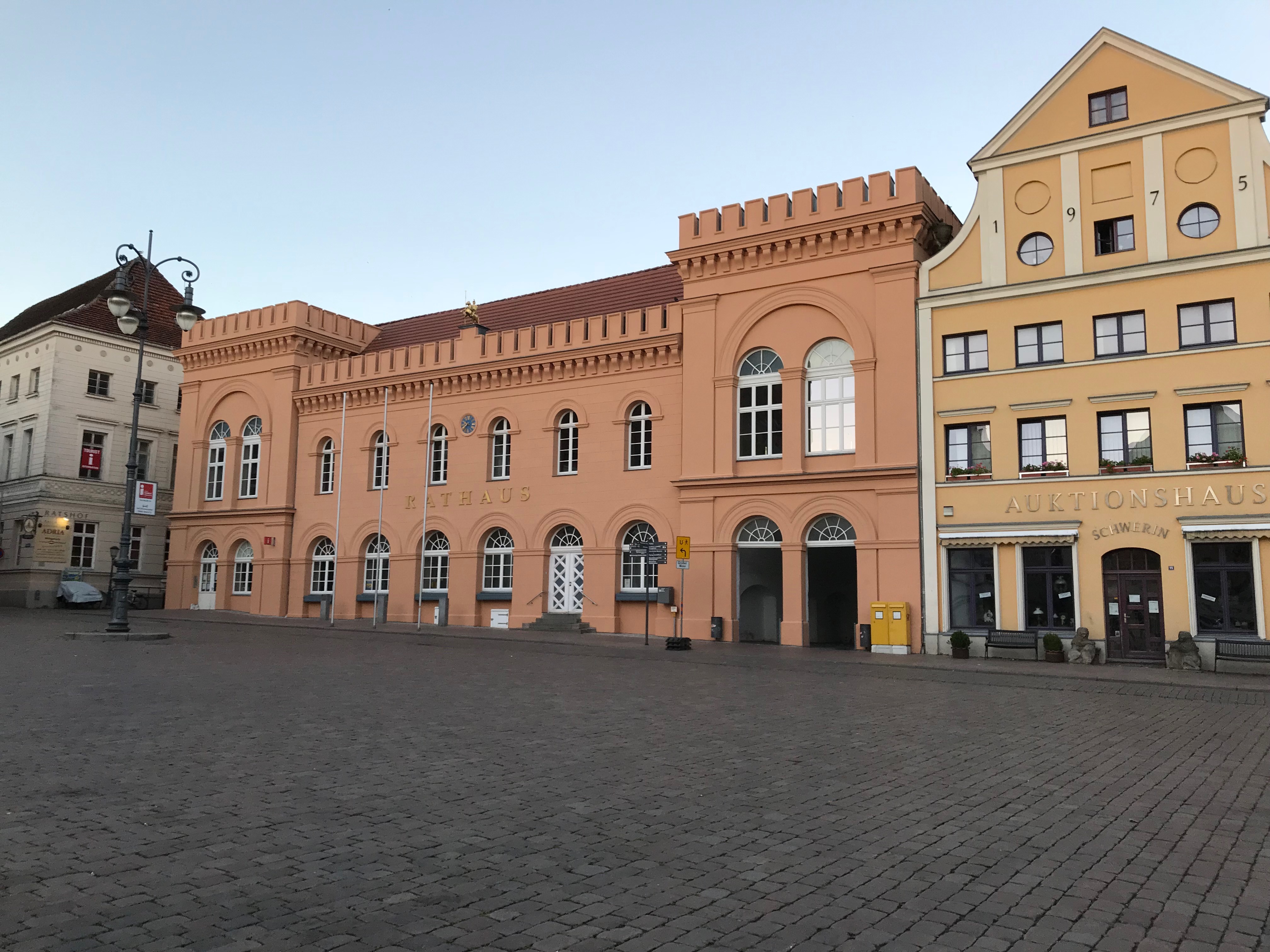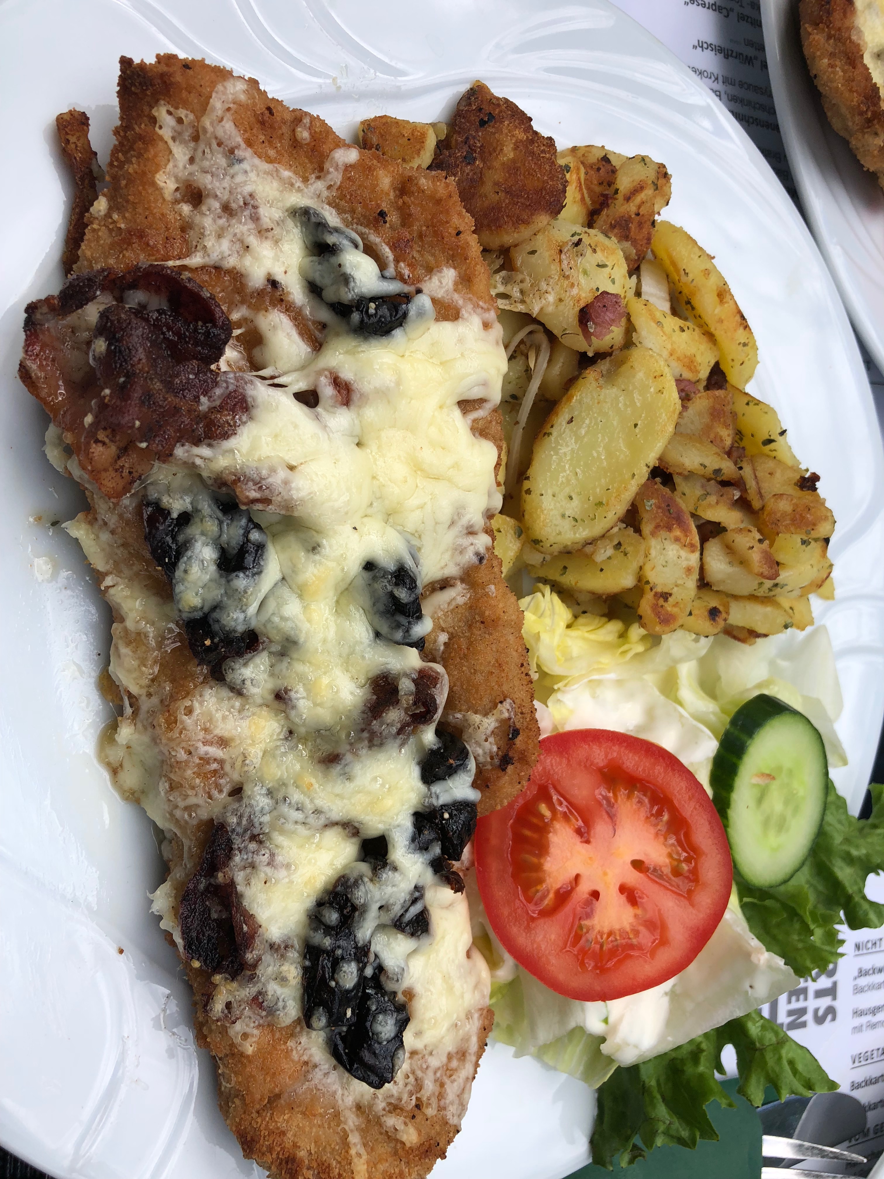 Sedan hade vi 10-15 mil på autobahn innan vi var framme i Schwerin vid 13-tiden. Kunde inte checka in på hotellet förrän vid 14:30 så vi parkerade ute och gick och åt en underbar schnitzel i solen. Var typ 25 grader ute och strålande sol.
