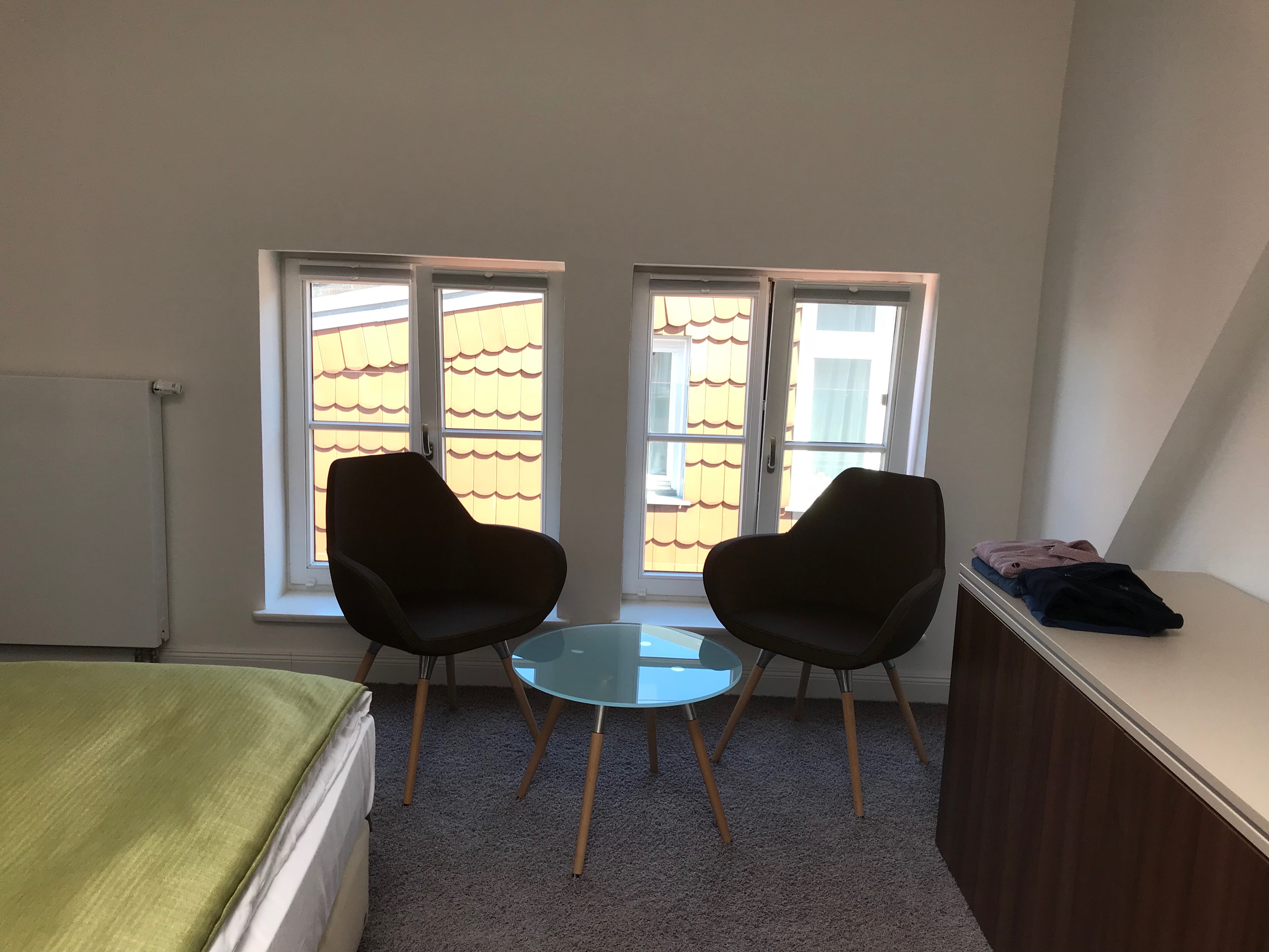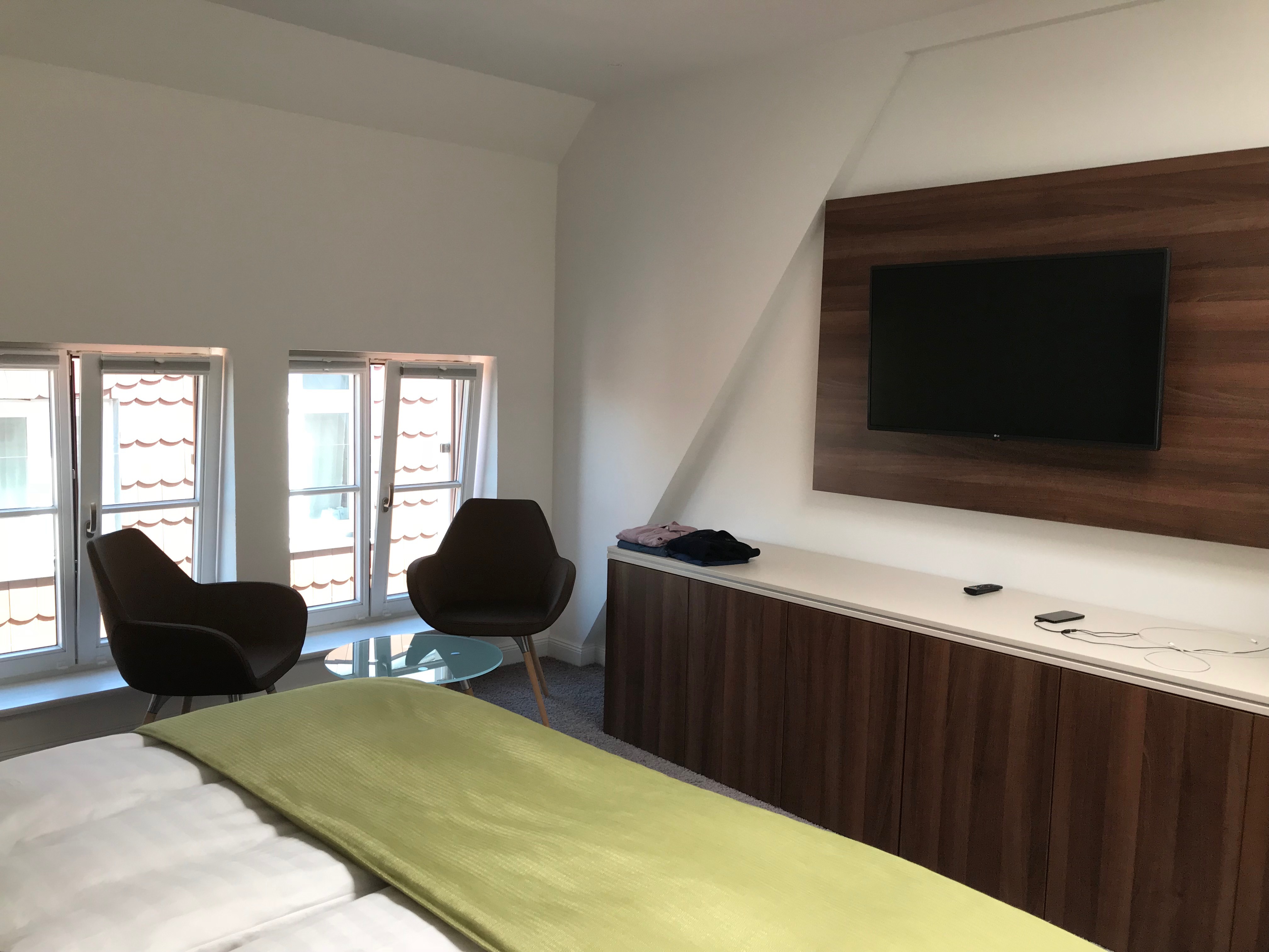 Gick sedan och checkade in innan vi hämtade bilen och blev uppgraderade till en svit... Den var 80 kvm stor…med en terass med utsikt mot Schwerin´s domkyrka.