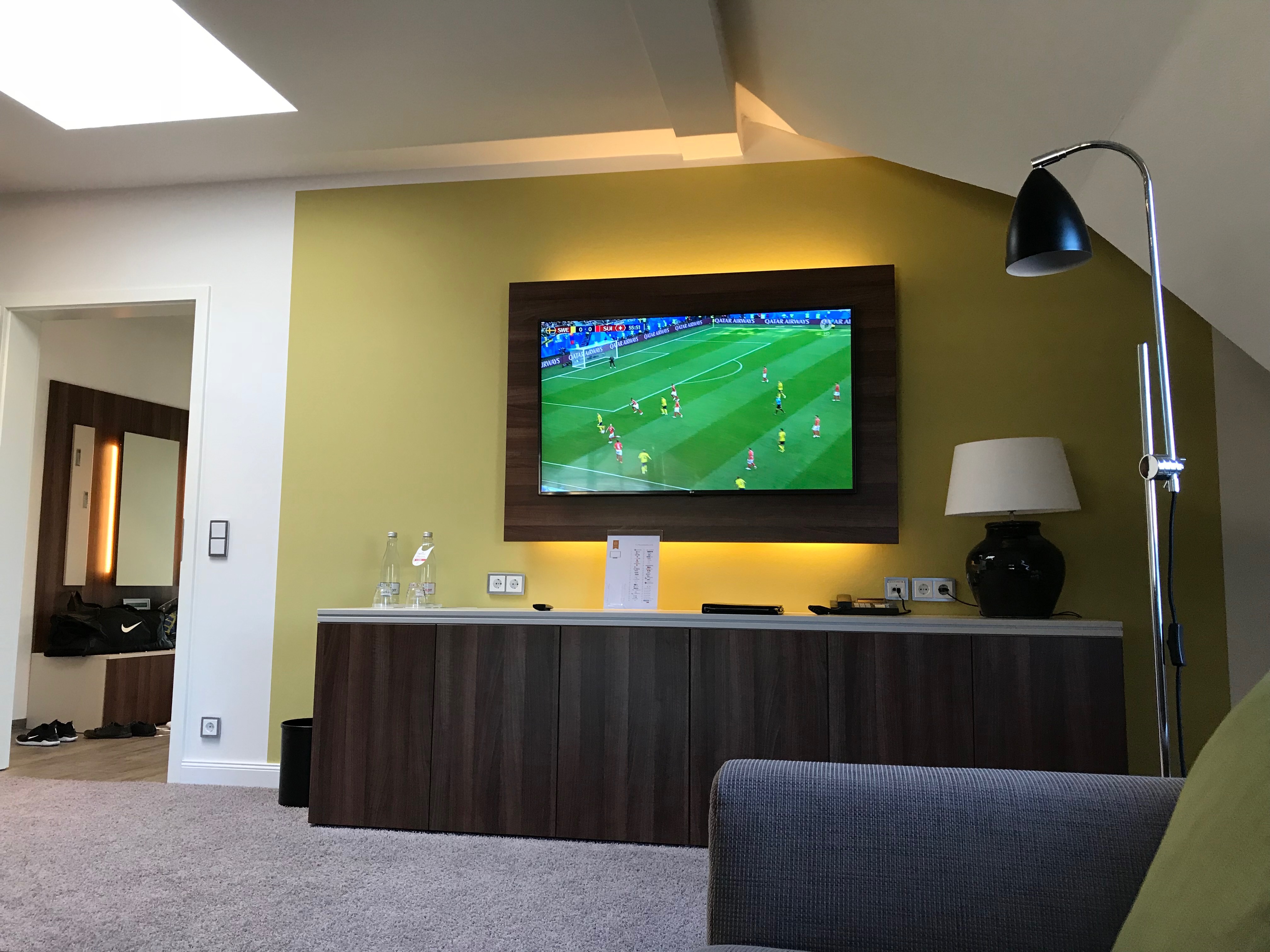 På eftermiddagen när vi kom tillbaka till hotellet hade åttondelsfinalen mellan Sverige och Schweiz börjat så det passade bra att koppla av lite till den. Var ju också tvungna att utnyttja det fina ”rummet” vi hade.