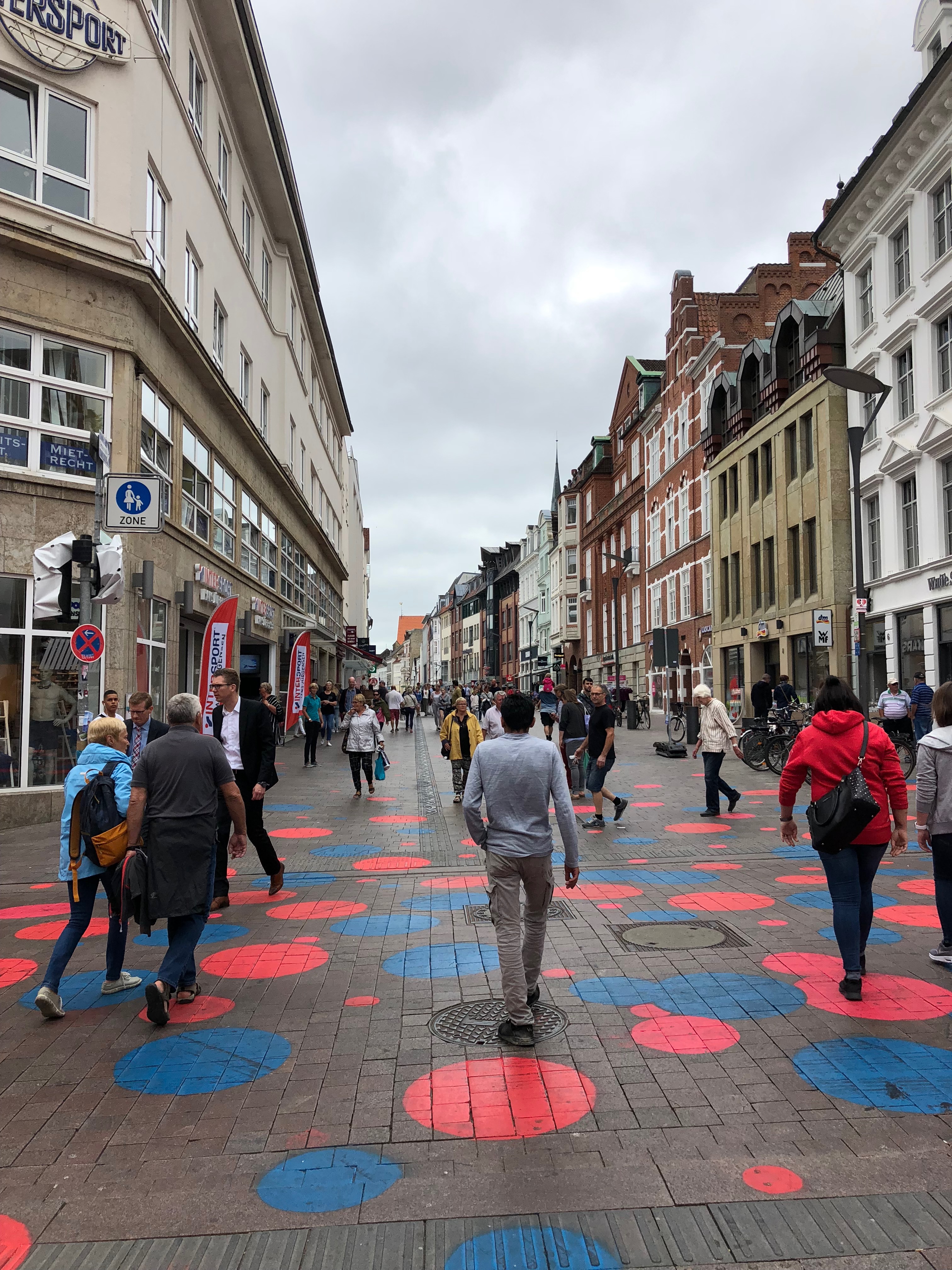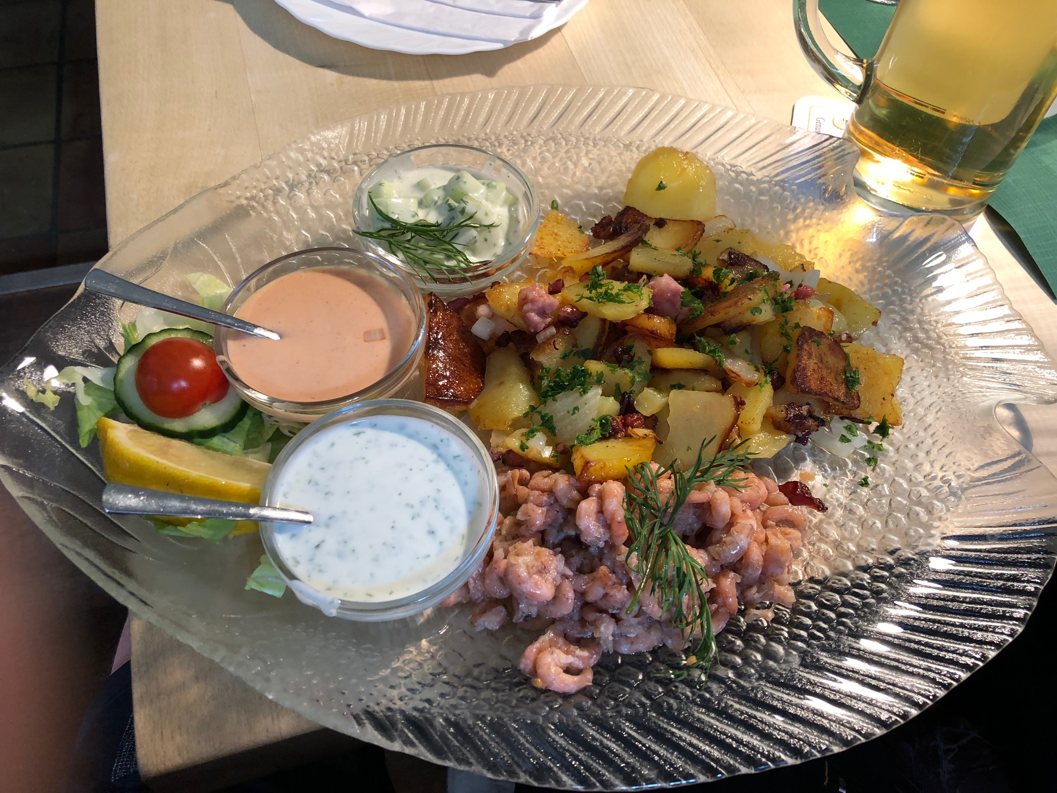 Kom iväg vid 09-tiden med 100 mil att köra hem och tänkte strunta i färjan och köra upp över Danmark i stället, via Flensburg. Vi stannade och åt där och handlade massa plattor öl och annat lull lull på ett stort varuhus. Fick våra älskade ”nordseekrabben” till slut… Gick ett varv på stan och shoppade lite också. Per handlade en tröja och jag en stekpanna… 🙂