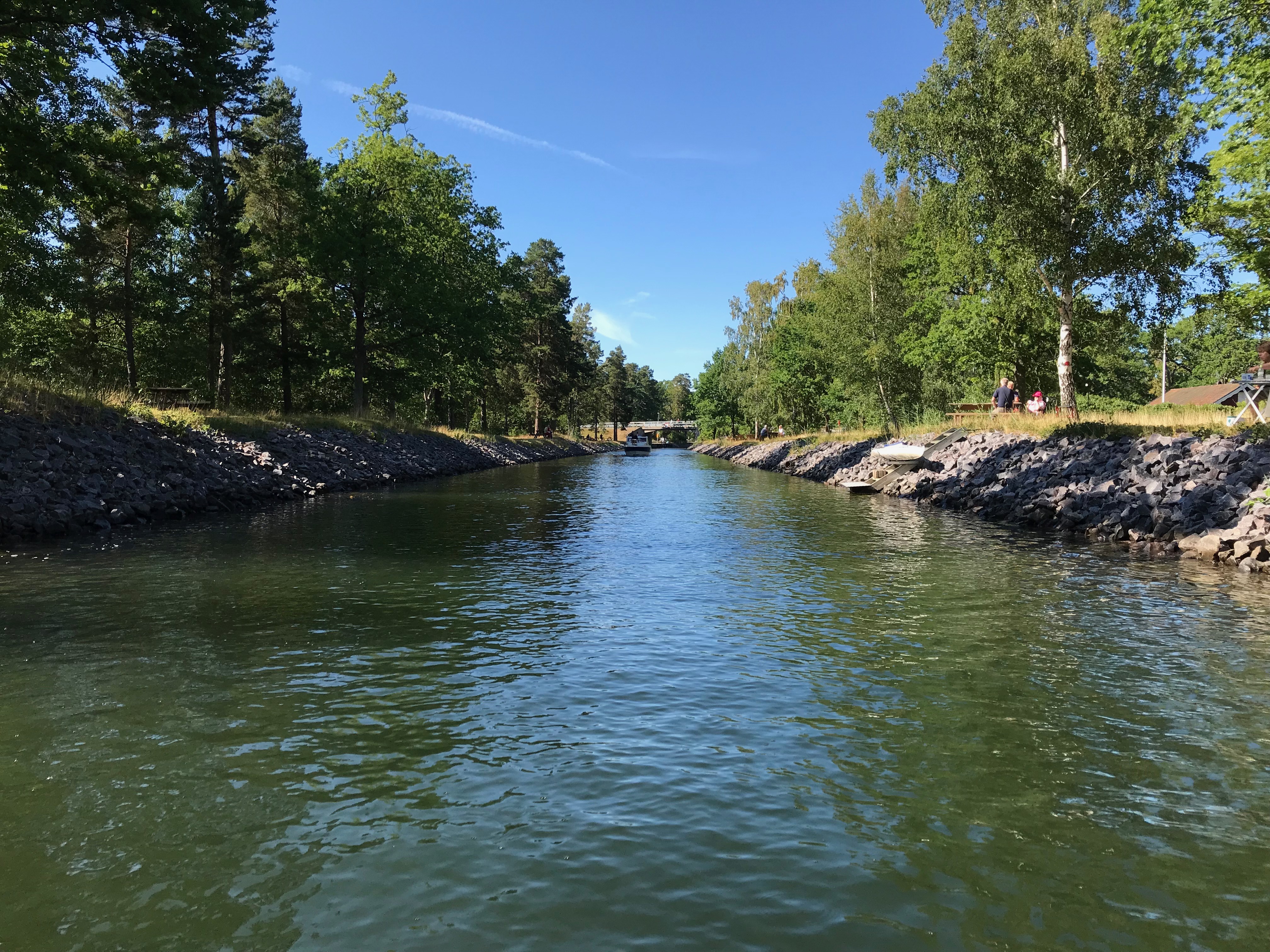 En nice dag… Började morgonen med kaffe i solen och tuffade med båten mot Loftahammar.