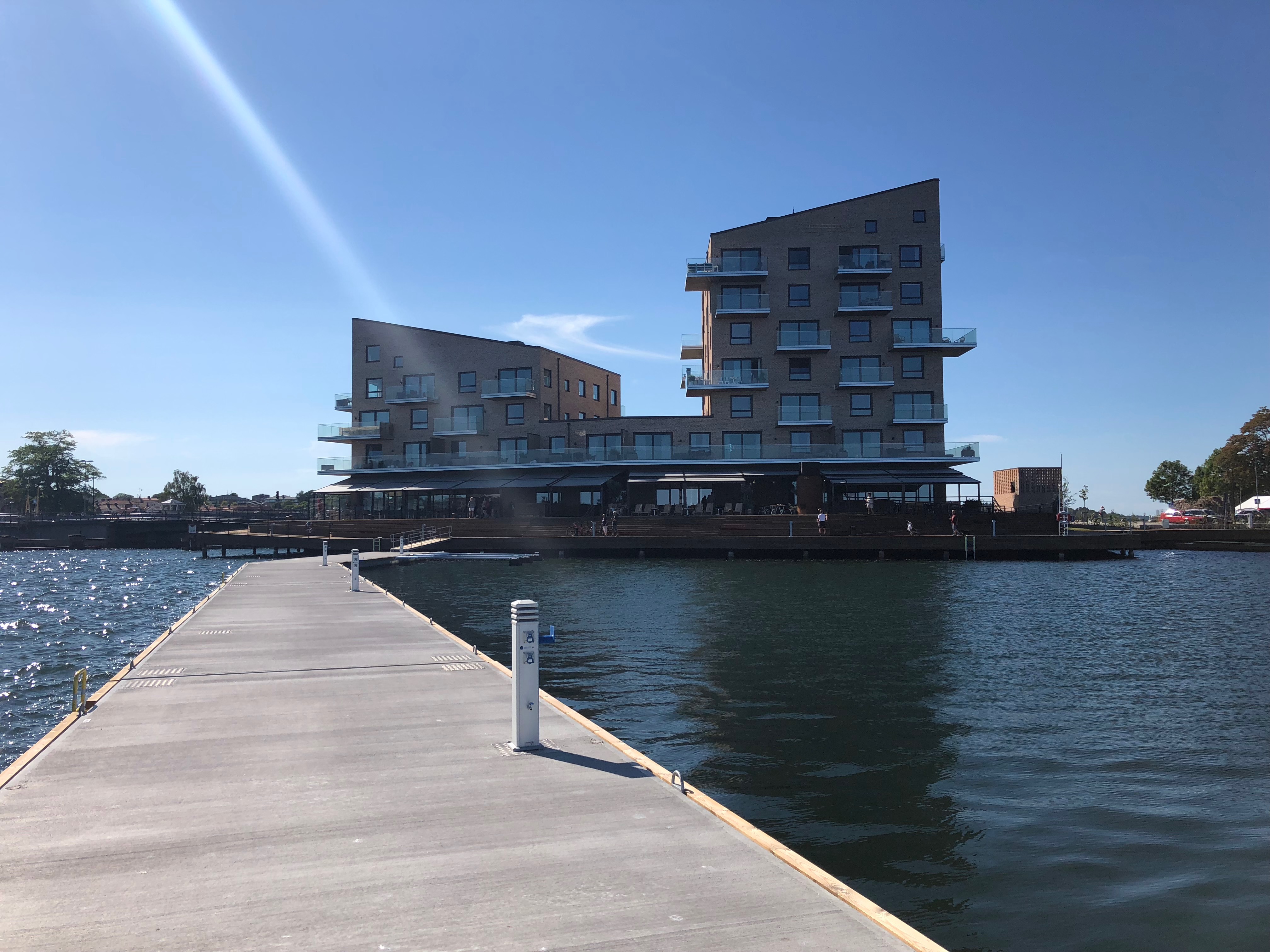 Slottsholmen är nu helt färdigbyggd och måste faktiskt säga att det blev bra. Det har öppnat en restaurang längst ned där man kan äta lunch eller middag på kvällen. Får väl se om vi hinner prova den innan semestern är slut. Bara 2 veckor kvar nu…. 🙁