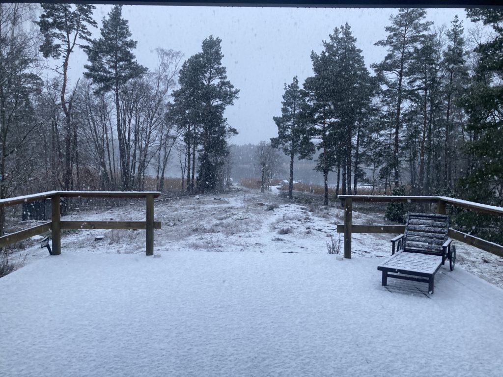 Ska bli snöstorm imorgon med 2-3 dm snö och blåsa 20 m/s i byarna. Är lite orolig hur jag ska ta mig hem från Uppsala… Dit kommer jag nog för det ska inte börja snöa förrän vid 05-tiden, men sedan hålla på hela dagen och natten. Tågen är ju inte riktigt kända för att lita på… Får väl ta in på hotell där i värsta fall om det finns något ledigt för det lär väl kanske vara fler som inte kommer hem…