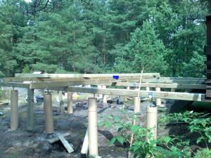 Det har varit ett himla rännande in till Västervik för att köpa saker som vi har glömt, eller köpt för lite av. Men nu är i alla fall pelarna gjutna och nästan hela ramverket på plats.