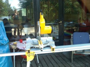 Rännandet in till stan fortsätter, idag har vi lämnat betongblandaren och istället hyrt en kap-och geringssåg för att det ska bli rakt och för att slippa såga för hand… Otäck liten maskin.